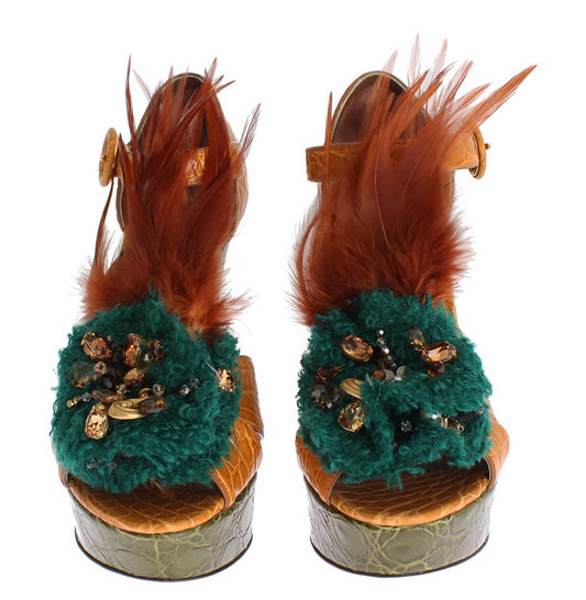 Dolce & Gabbana Green Leather Crystal Platform Sandal Shoes